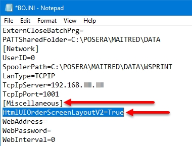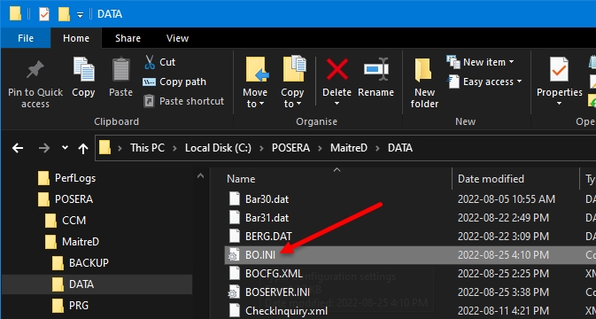 Using FIle Explorer, browse to C:\POSERA\MaitreD\DATA and locate the BO.INI file.