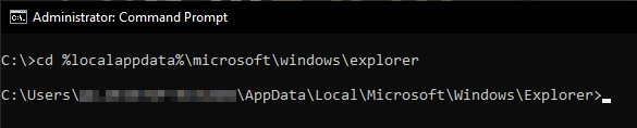 cd %localappdata%\microsoft\windows\explorer [ENTER]