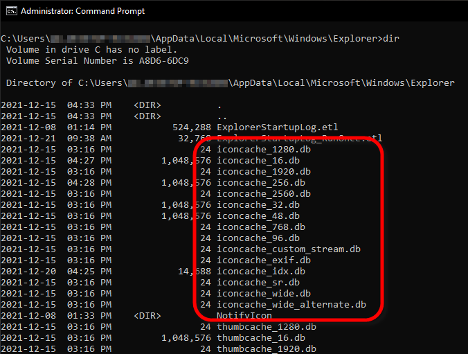 We can see that about half of the file names in this folder start with "iconcache". This means we are in the right folder.