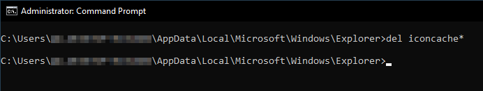 NOTE: Attempting to delete the icon cache files directly from the File Explorer will not work, as they are constantly being accessed by the Windows Explorer process. This is why we need to use the command prompt after manually stopping the Windows Explorer process.