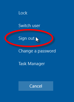 On your keyboard, press CTRL + ALT + DEL simultaneously. On the menu that appears on your screen, click Sign out. This will bring you to the Windows sign on screen.