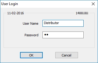 The login prompt appears. Type Distributor (with a capital “D”) in the User Name field, and press the space bar twice in the password field. Click OK to proceed.
