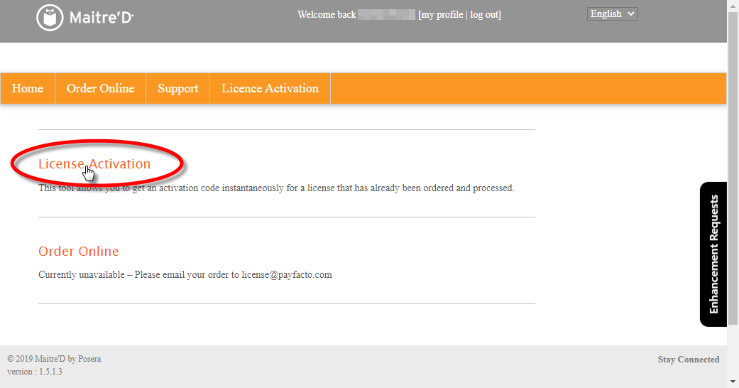 The first step to add new functionalities to your Maitre'D license is to contact your PayFacto representative to purchase the options you need. Once the purchase and invoicing process has been completed, you will be able to start the activation process.