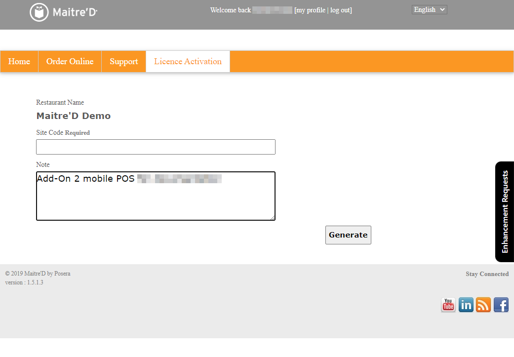 NOTE: The terms "Activation Code" and "Key Code" are used interchangeably between Maitre'D and the distributor portal. For the purpose of license activation, they mean the same thing.