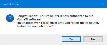 You will be prompted to restart the computer. Log off from the Maitre'D distributor portal, save your work and close applications that may be running, then click Yes to restart your computer.