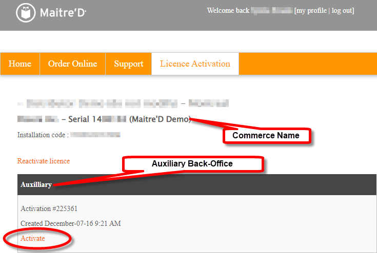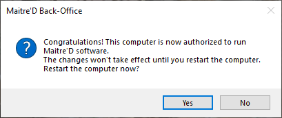 Maitre'D Auxiliary Back-Office License Activation