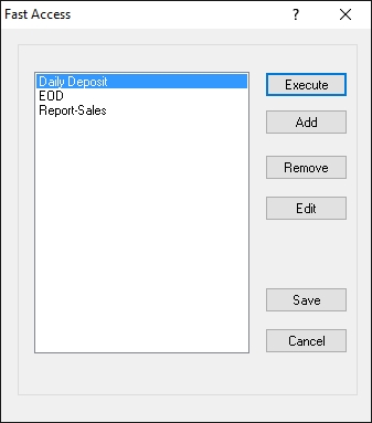 Enabling the Fast Access option allows you to create scripted tasks for Maitre’D Back-Office users with this access. Instead of gaining full access to all the features of the Maitre’D Back-Office, the user will be forced to perform specific tasks.