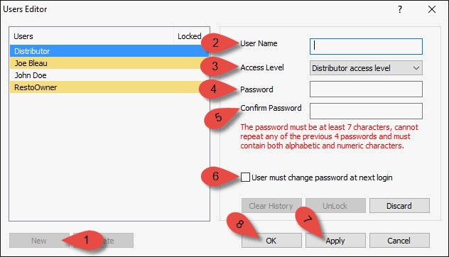 After the initial logon and initial user creation is completed, other user accounts will need to be created. These accounts can be used for various tasks, ranging from basic reporting to all types of configuration changes. Due to the sensitive nature of the data that can be accessed through the Maitre’D Back-Office, its access needs to be protected adequately by usernames and passwords.