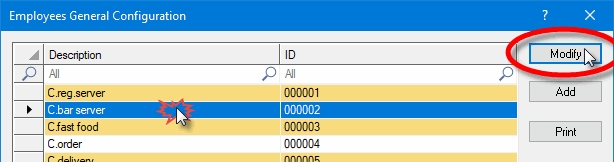 The list of available Employees General Configurations will be displayed. Select a configuration that requires access to the Cash Discount and click the Modify button.