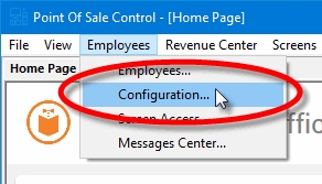 From the Point of Sale Control module, click the Employees menu and select Configuration...