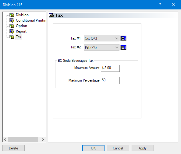 The aim of this article is to explain how to setup Maitre'D divisions to comply with the British Columbia Provincial Sales Tax Act. These setings will ensure that sodas are taxed according to Provincial Sales Tax (PST) Notice 2021-002, which came into effect on April 1st 2021. At the same time, this configuration will ensure compliance with all other provisions of the Provincial Sales Tax Act pertaining to the restaurant and bar industry, as defined in Bulletin PST 119 - Restaurant and Liquor Sellers.