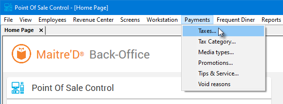 Click on the Payments menu and select the Taxes... option.