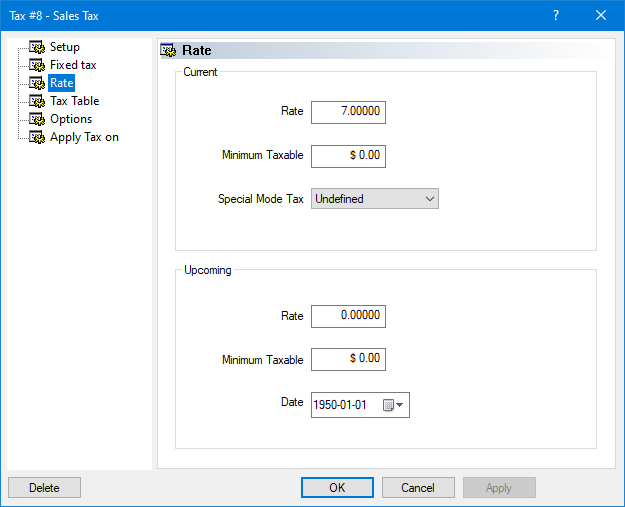 NOTE: The value in the Rate field will be ignored if a Tax Table is used.