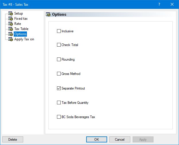 Enable this option to activate the calculation method that is specific to the Soda Beverage tax applicable in the Canadian province of British Columbia. Enabling this option also allows you to use the BC Soda Beverages Tax options located in the Tax branch of each division.