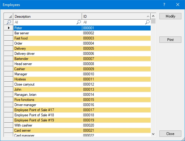 Close the list of employees when done. You may also close the Point of Sale Control Module and logout of the Maitre'D Back-Office.