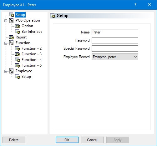 The employee's properties will open on the Setup branch.