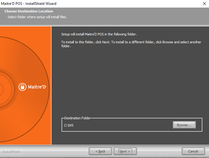 Browse to the MaitreD\PRG\Setup folder, and double-click the WSsetup.exe installer to start the POS installation.