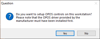InstallShield Wizard - POS Path You will be prompted whether to setup the OPOS Controls for this workstation. If OPOS devices are attached to this POS, click Yes. Otherwise, click No. Note that it is always possible to manually run the OPOS setup (OPOSetup.exe) utility later, from the C:\WS folder.