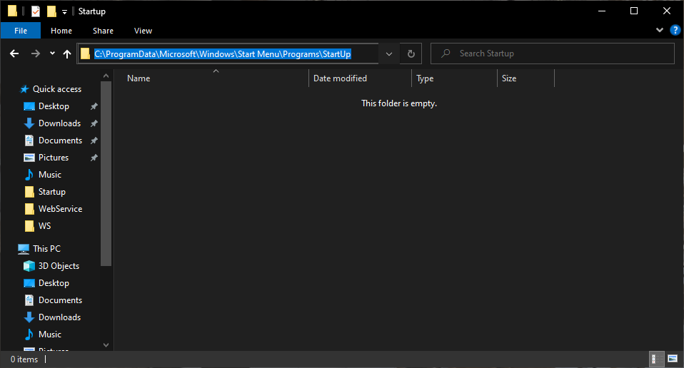 Renamed Shortcut Using Windows File Explorer, browse to C:\ProgramData\Microsoft\Windows\Start Menu\Programs\Startup\. Note that you need to be able to see hidden files and folders.
