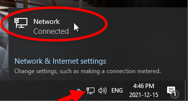 Just like before, in the Windows Notification area, click on the Network Connection icon, then click on the network connection you wish to configure. (there could be more than one.)