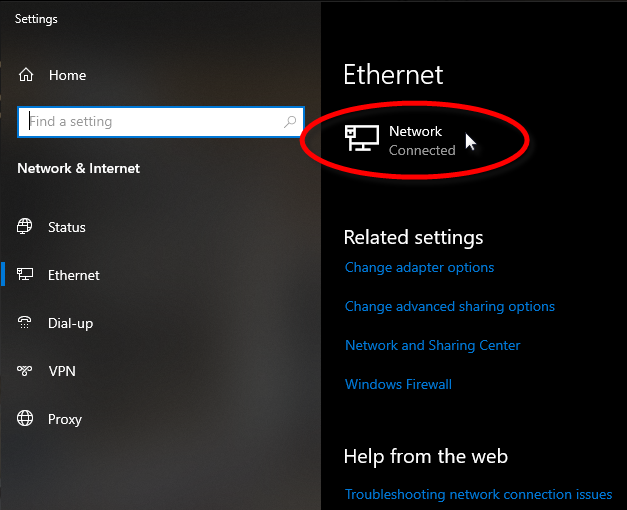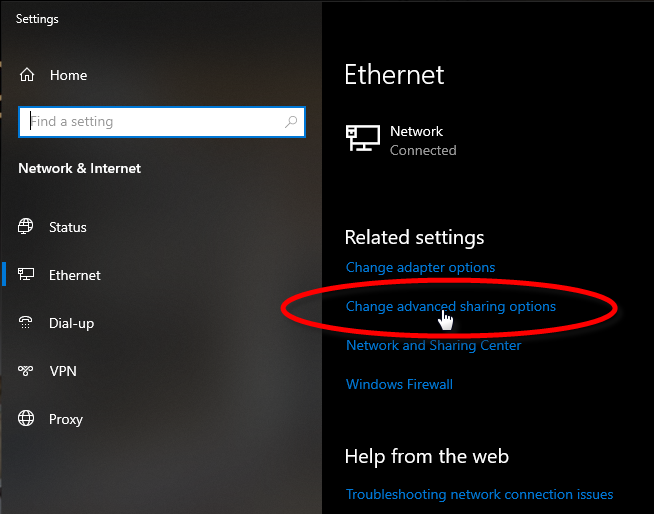 Ethernet - Basic Settings Under the Private (or domain) profile, make sure that: