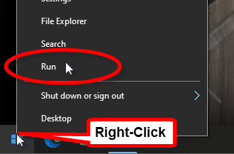 Windows logon At the Windows desktop, right-click the start button and select the Run option.