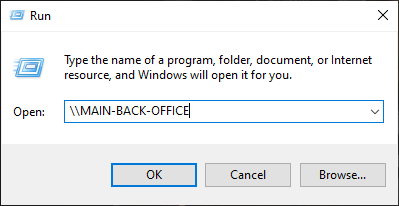 Right-Click the Start Menu In the Run dialog box, type two back-slashes ( \\ ) followed by the host name of the PC where the Maitre'D Back-Office is installed, then click OK.