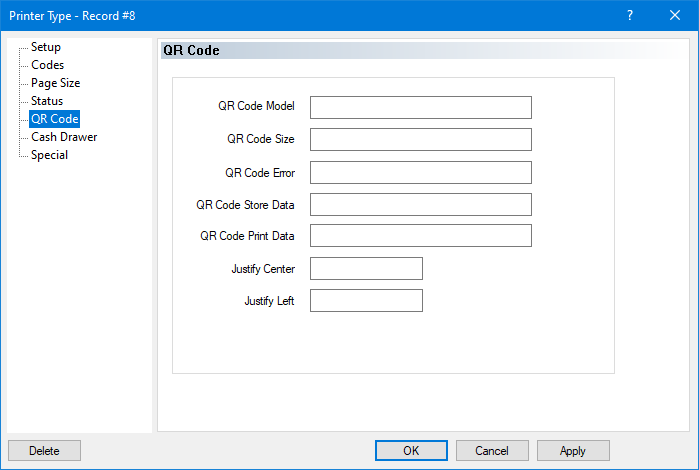 Type in the ESC/POS code for the QR Code Size. This is the code that tells the printer which size of QR code to print.