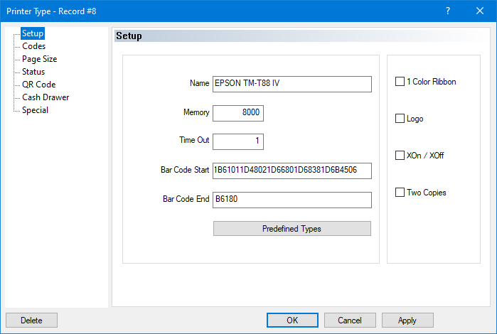 If the printer supports bar code printing, enter the code which marks the bar code start. (Up to 48 characters)