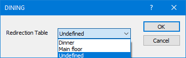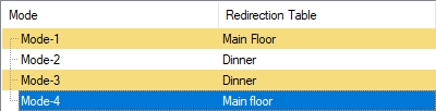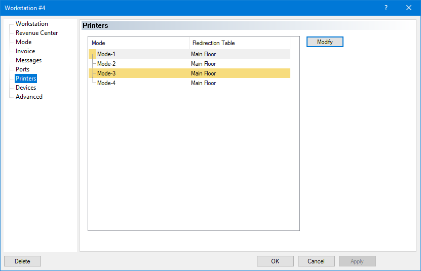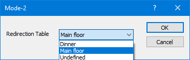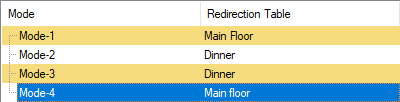 Select a Mode (or Revenue Center) and click the Modify button. From the drop-down list, select the Redirection Table to assign to this Mode (or Revenue Center), then click OK.