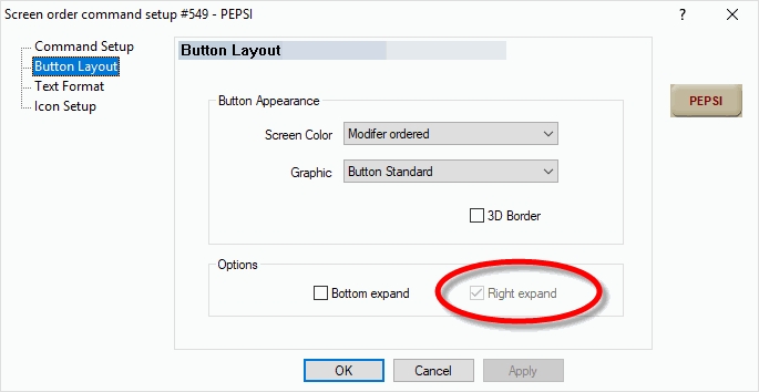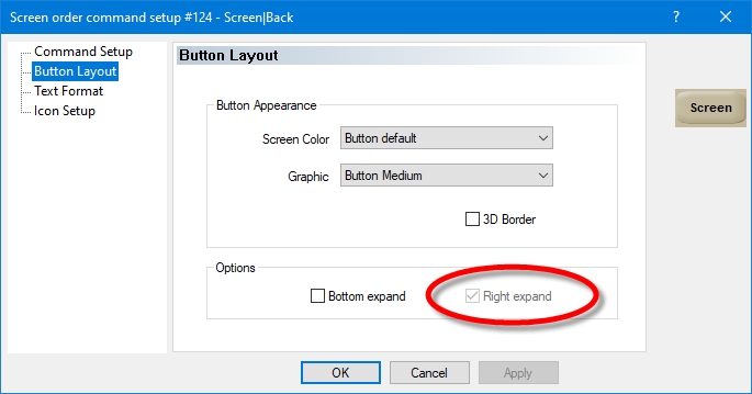 On some occasions, it is possible to have buttons where the Right Expand or Bottom Expand options are enabled but grayed out because the button is on the edge of the screen.