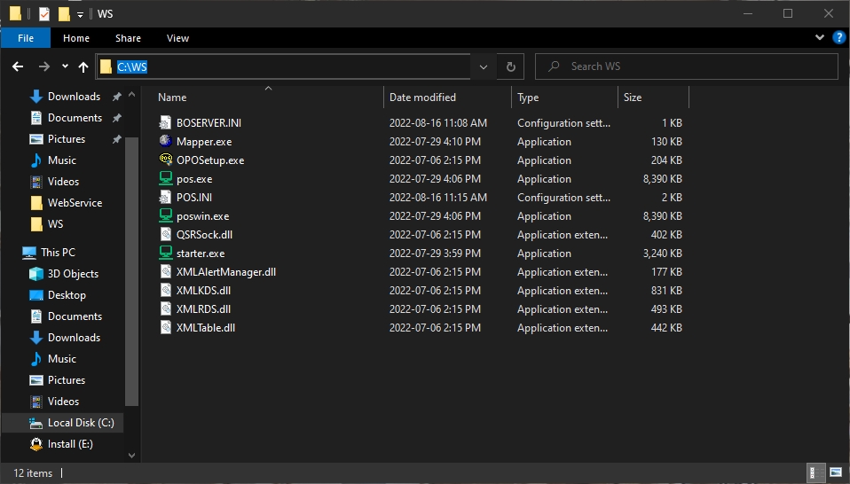 If you see only about a dozen items in the WS folder, as in the screenshot above, this is already a sign that something is not right, but let's troubleshoot further. Locate the file called pos.exe. Double-click the file to execute it.