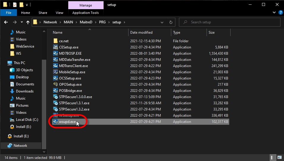 Browse to the MaitreD\PRG\Setup folder, and double-click the wsupd.exe installer.