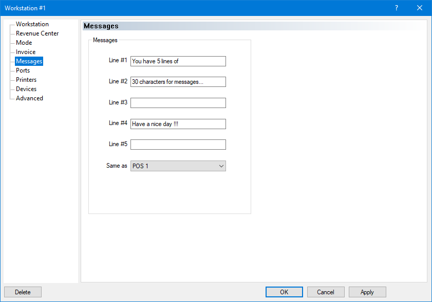 Messages on the Legacy POS UI