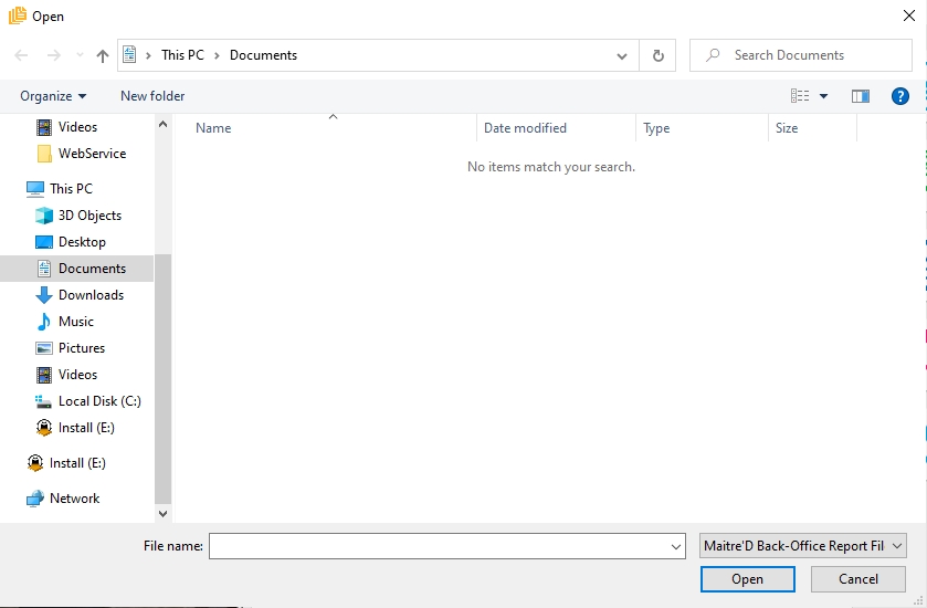 The Open option from the File menu, allows to open custom reports already created with the new options from the File menu. When selecting this option, the default directory where your reports are stored, will prompt you. Select from the reports available, the one you wish to open.