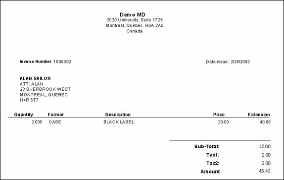 Maitre'D's billing check report allows to print a previously created billing check so it can be mailed or faxed to the customers. From the report filter window, select the dates and customers to be included in the report, as well as whether or not to include inactive accounts. The following is a sample of the billing check report: