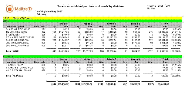 The following is a sample of the Sales Consolidated per Item and Mode by Division report