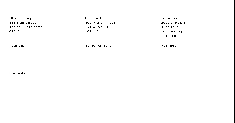The following is a sample of the Customers Mailing Labels report: