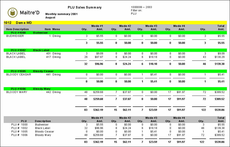 The following is a sample of the PLU sales summary report: