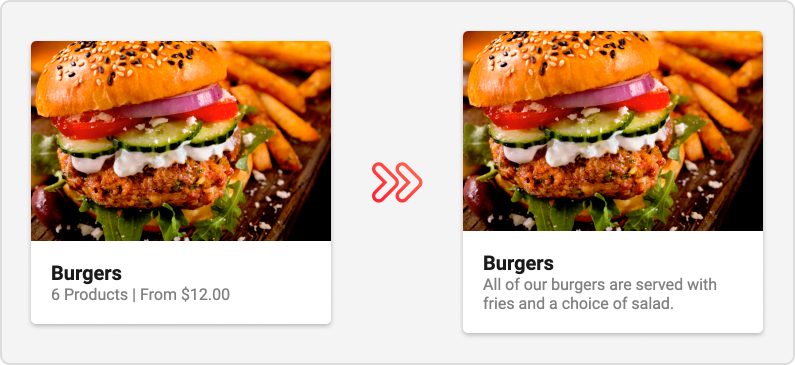 Usually, categories are displayed with the number of products contained as well as the minimum price for a product. You can, however, add and display a description for one or more of your categories.