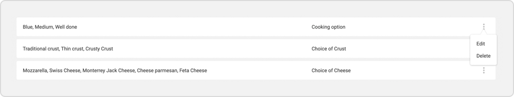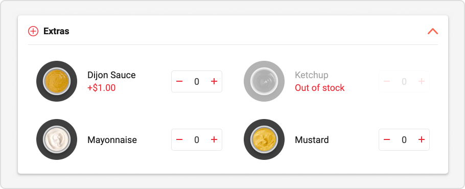 Example: Ketchup, Mustard and Mayonnaise in the Extra Sauces Group.