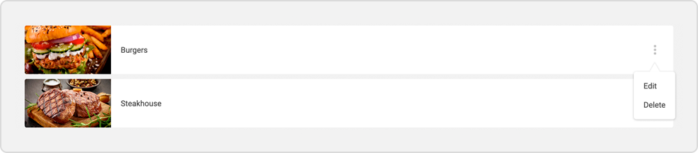 A category is made up of products that are similar or correspond to a similar type. Categories are the first to be seen when the user arrives at the restaurant menu.