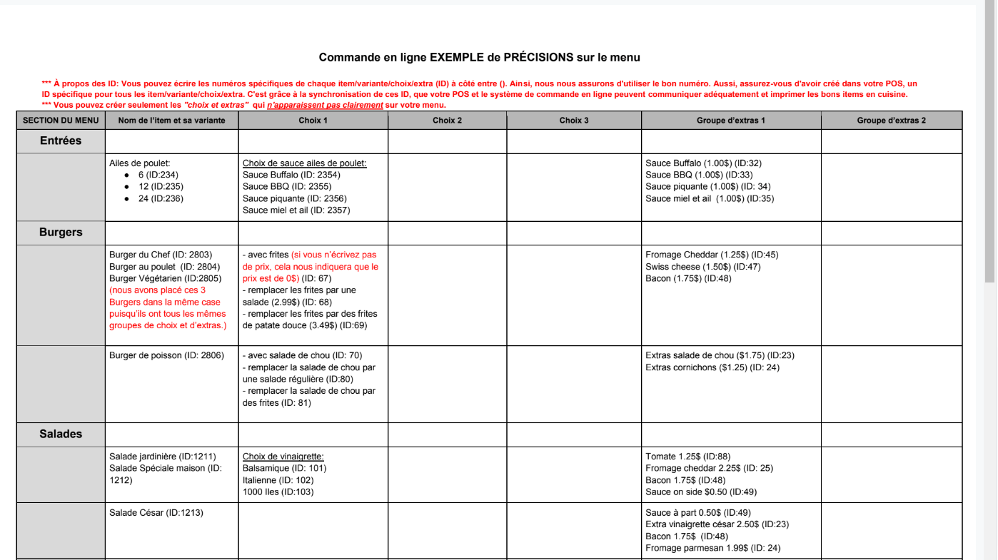 Fill out the forms with the necessary information and add an image as needed (jpg or png, 600 x 400 pixels). A. General Information - Enter descriptive product information in this section (name, description, photo). B. Classification - Classification is the category to which a product belongs. Note that if you do not assign a category to the product, the product will be hidden from users. C. Payment Information - You can enter the price of the product according to the type of receipt (if required). It is also in this section that you can synchronize the product with your existing POS system and adjust the applicability of the product to certain functions and promotions in the ordering interface. D. Modifiers and Combo - In this section you can select the Extras, Notes and Combo that will be applicable to the product. Select the desired item and click on the arrows to send it to the right section and activate it. E. Product Variants - To offer your product in multiple available formats, you can create variations that will have all of their information, pricing, photos, and POS sync details. Enter the requested information in order to create a variant and select the extras, remarks and combos that apply to it.